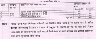 आरसीएचओ डॉ दयानंद सिंह ने बताया कि सुबह 9 बजे से शाम 5 बजे तक 18 वर्ष एवं 18 वर्ष से अधिक समस्त आयु वर्ग के निवासियों को प्रथम एवं द्वितीय डोज से टीकाकृत किया जाएगा। कल का टीकाकरण कार्यक्रम केवल झुंझुनूं शहर में रखा गया है तथा शिविर स्थलों पर ही रजिस्ट्रेशन किया जाएगा। टीकाकरण कोविशिल्ड व को-वेक्सिन से होगा।