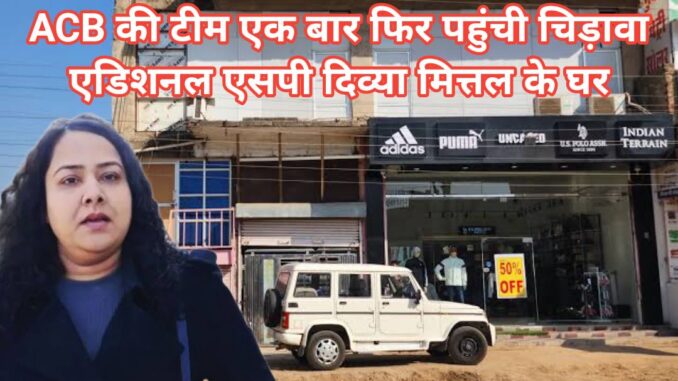 एक बार फिर झुंझुनूं जिले के चिड़ावा पहुंची ACB की टीम : एडिशनल एसपी दिव्या मित्तल के पुश्तैनी घर चिड़ावा में पहुंची टीम।