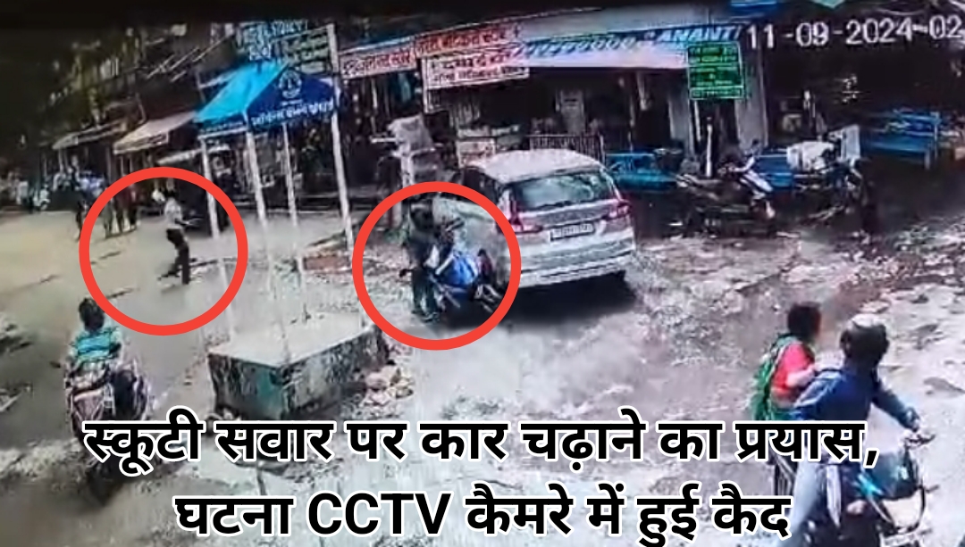 Jhunjhunu News स्कूटी सवार पर कार चढ़ाने का प्रयास, घटना CCTV कैमरे में हुई कैद