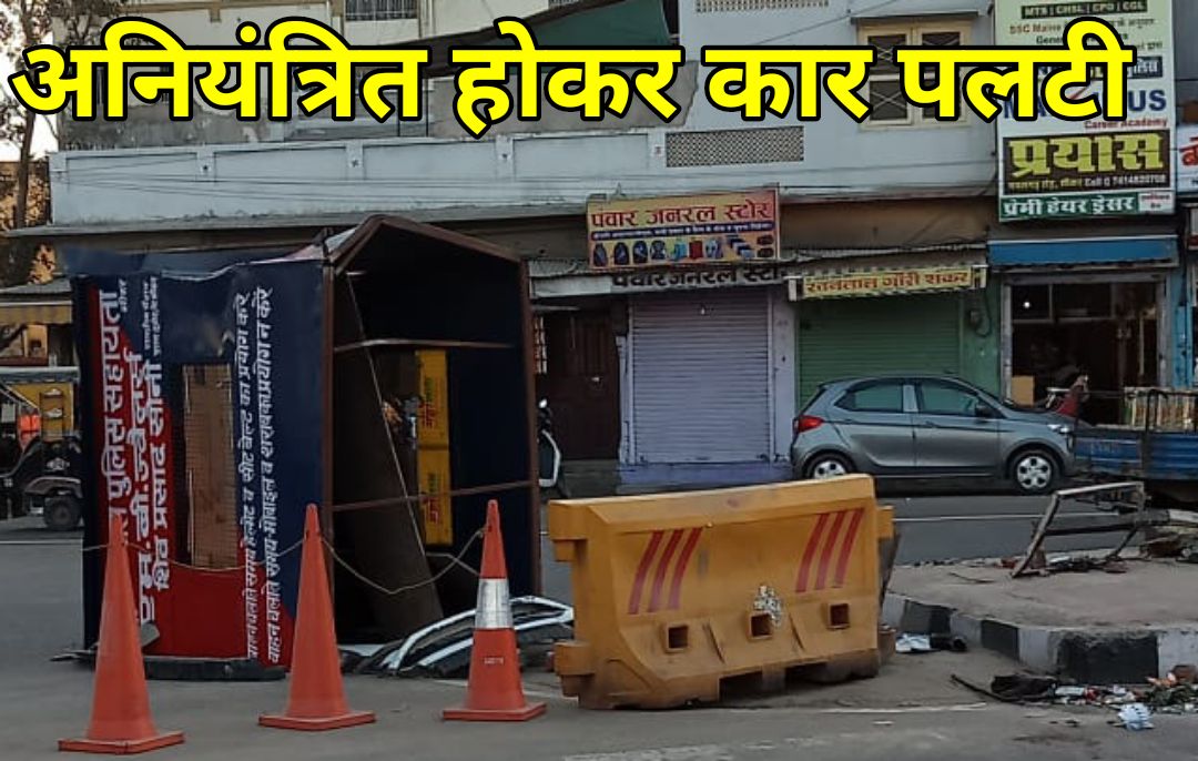कल्याण सर्किल पर अनियंत्रित होकर कार पलटी