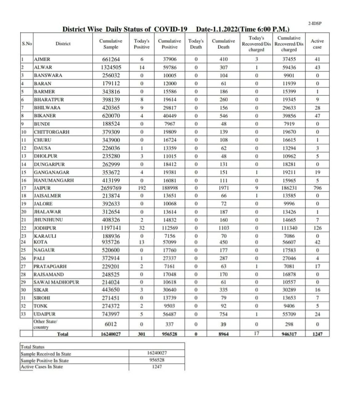 नवलगढ़ के खिराेड का 28 साल का युवक 31 दिसंबर काे दुबई से लाैटा था और उसका सैंपल लिया गया था। जिसकी रिपाेर्ट में वाे पाॅजिटिव मिला। उन्हाेंने बताया कि ये युवक अभी घर पर है और सर्दी जुकाम का काेई लक्षण भी नहीं है। इसके भी परिवार के सदस्याें के सैंपल लिए गए हैं। सीएमएचओ ने बताया कि इन दाेनाें संक्रमिताें काे वैक्सीन के दाेनाे टीके लगे हुए हैं।