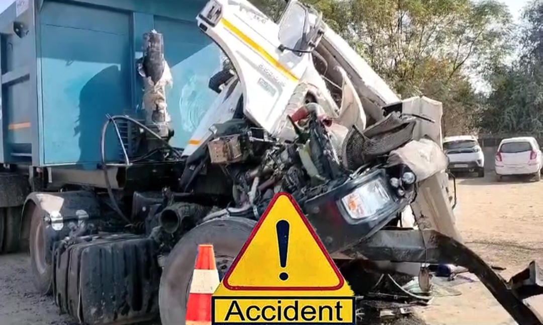 दो ट्रकों की आपसी भीषण भिड़ंत: चालक और परिचालक गंभीर घायल