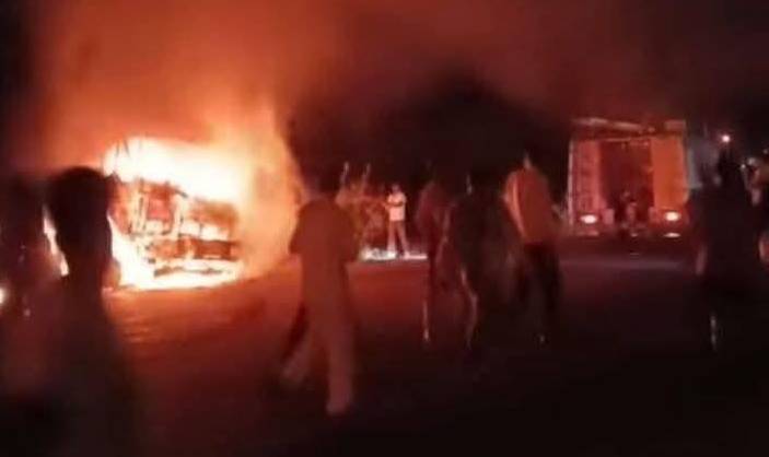 भीषण सड़क हादसा: बोलेरो-डंपर भिड़ंत के बाद लगी आग, 3 की जिंदा जलकर मौत, 5 घायल
