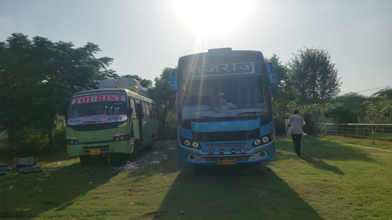 विभाग द्वारा दो बसों एवं एक पिकअप में लदे माल की जांच हेतु कर भवन झुंझुनू में खडा किया गया है।
