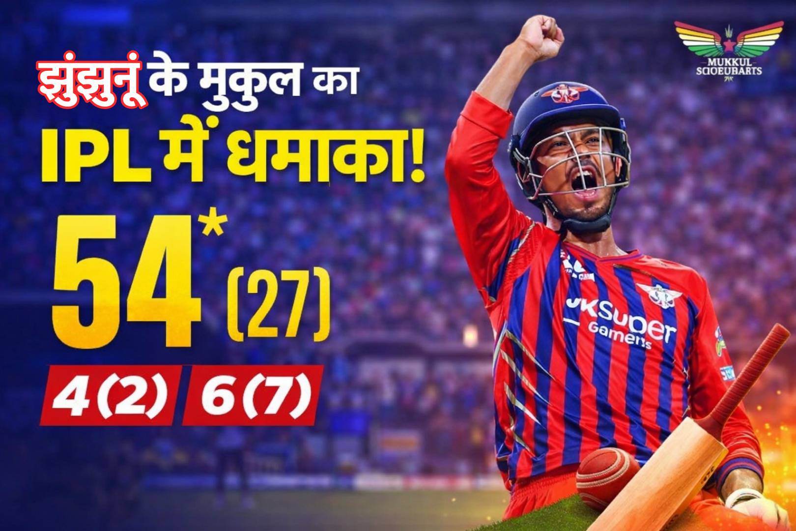 mukul choudhary झुंझुनूं के मुकुल चौधरी का IPL में धमाका: 27 गेंदों में नाबाद 54, आखिरी ओवर में दिलाई जीत