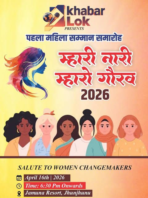 झुंझुनूं। महिलाओं के सशक्तिकरण और उनके उत्कृष्ट योगदान को सम्मानित करने के उद्देश्य से “म्हारी नारी म्हारो गौरव” कार्यक्रम का भव्य आयोजन 16 अप्रैल 2026 को किया जाएगा। यह आयोजन Khabar Lok द्वारा प्रस्तुत किया जा रहा है।