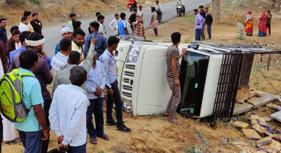 स्टेट हाइवे पर पिकअप पलटी : सड़क हादसे में आधा दर्जन लोग घायल