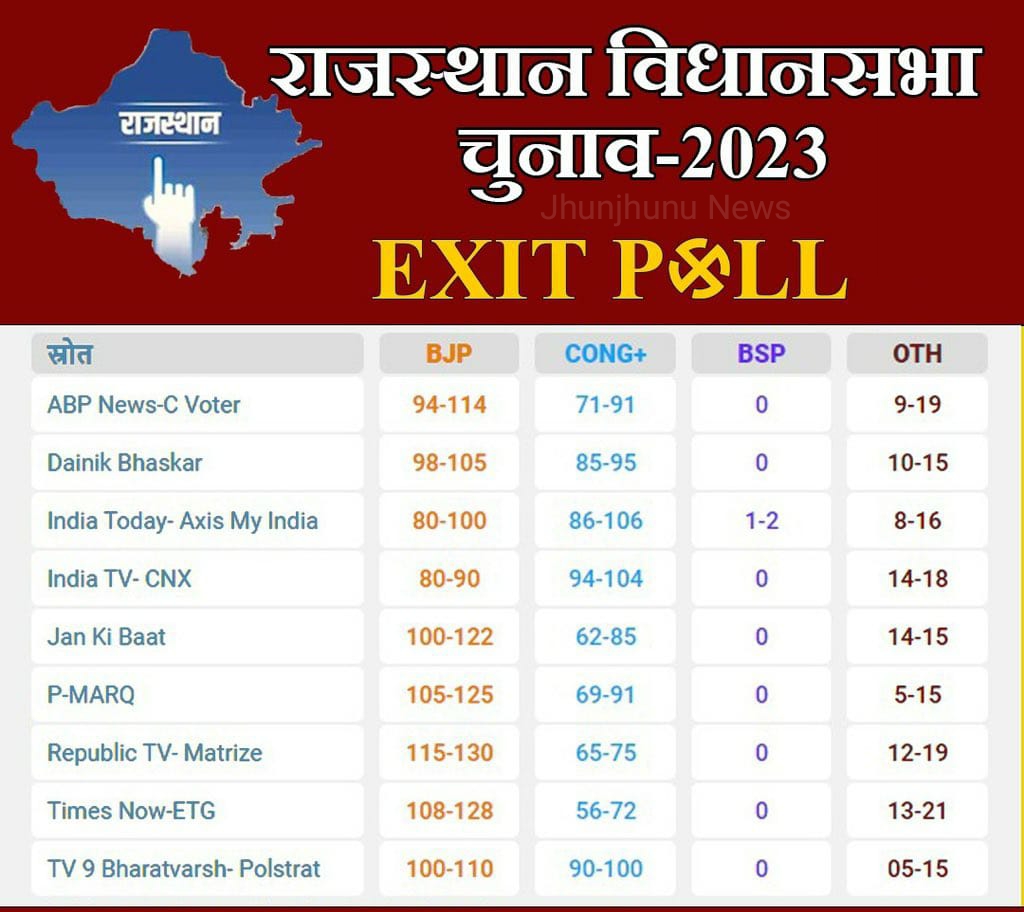 Rajasthan Exit Poll 2023 Live : राजस्थान में इस बार किसकी सरकार? एग्जिट पोल के आंकड़ों में हुआ सब कुछ साफ