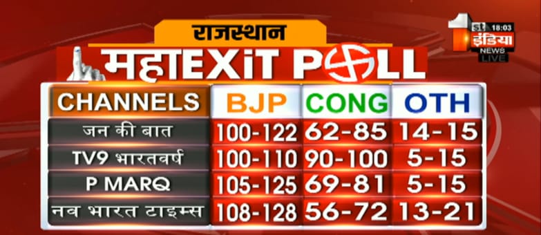 पांच साल पहले 2018 के विधानसभा चुनाव में राजस्थान की जनता ने कांग्रेस को भी पूरा बहुमत नहीं दिया था। 200 में से 99 सीटें कांग्रेस को मिली थी। जबकि चार प्रमुख एग्जिट पोल टाइम्स नाऊ सीएनएक्स, एक्सिस माय इंडिया, न्यूज एक्स और सी वोटर के एग्जिट पोल में कांग्रेस को स्पष्ट बहुमत बताया गया था।