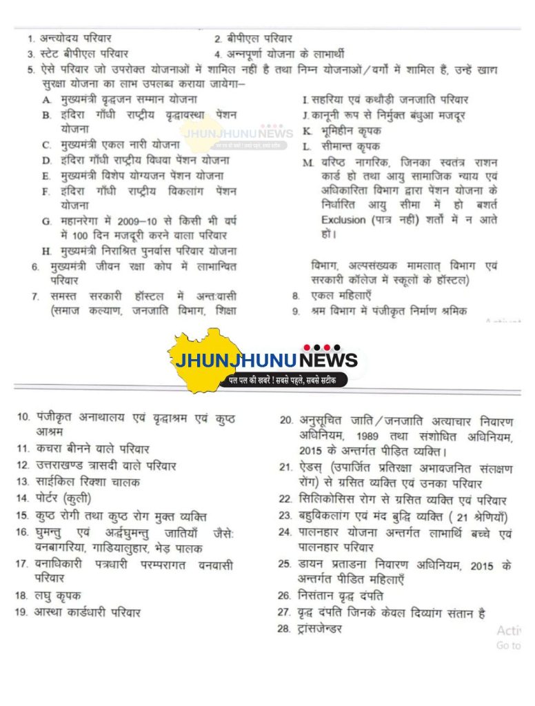राजस्थान: खाद्य सुरक्षा योजना (गेहूं चालू करवाने) के लिए आवेदन की पात्रता के लिए आपको 28 श्रेणियों में से किसी एक श्रेणी में आवश्यक है।