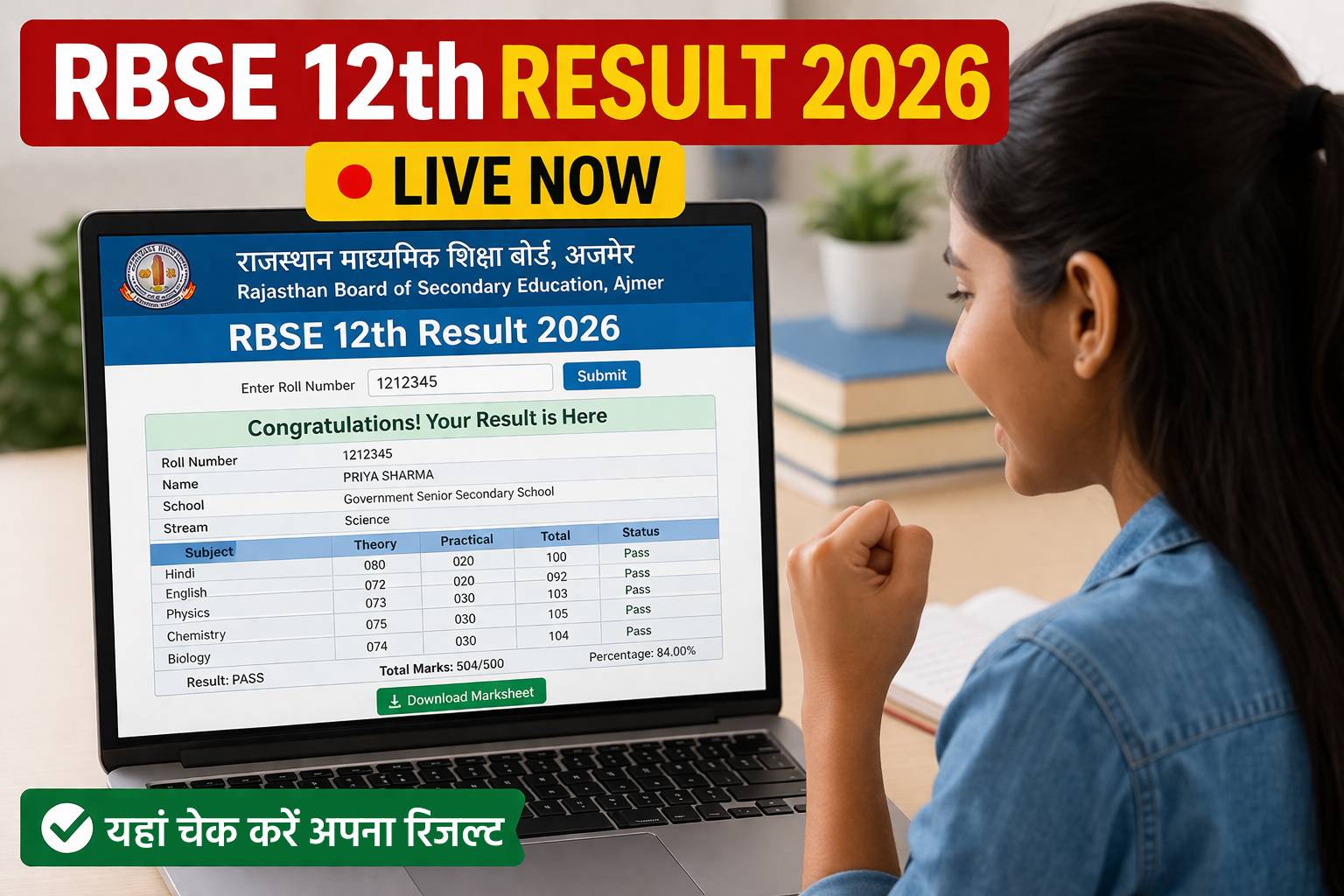 RBSE 12th Result 2026 LIVE: राजस्थान बोर्ड रिजल्ट हुआ जारी, ऐसे करें चेक