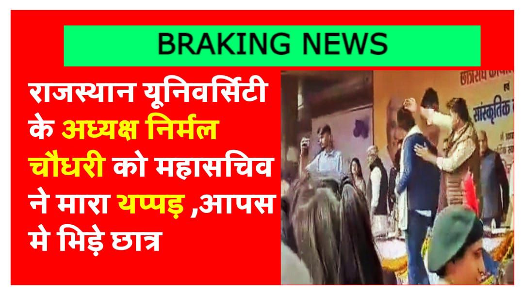 राजस्थान यूनिवर्सिटी के अध्यक्ष निर्मल चौधरी को मारा थपड slapped the president of rajasthan university महारानी कॉलेज छात्र संघ कार्यालय उद्घाटन में छात्र भिड़े