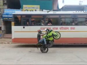 थाने के सामने बाइक से स्टंट, भीड़भाड वाले क्षेत्र में एक पहिए पर दौड़ाई बाइक, वीडियो वायरल