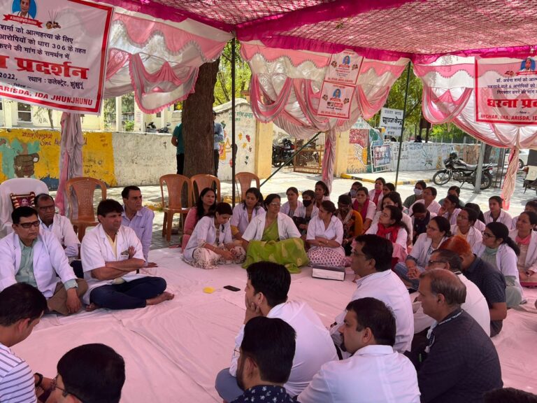 Jhunjhunu Khabar जिलेभर के 600 चिकित्सकों ने कार्यबहिष्कार कर डॉ अर्चना शर्मा को न्याय दिलाने की मांग की गई