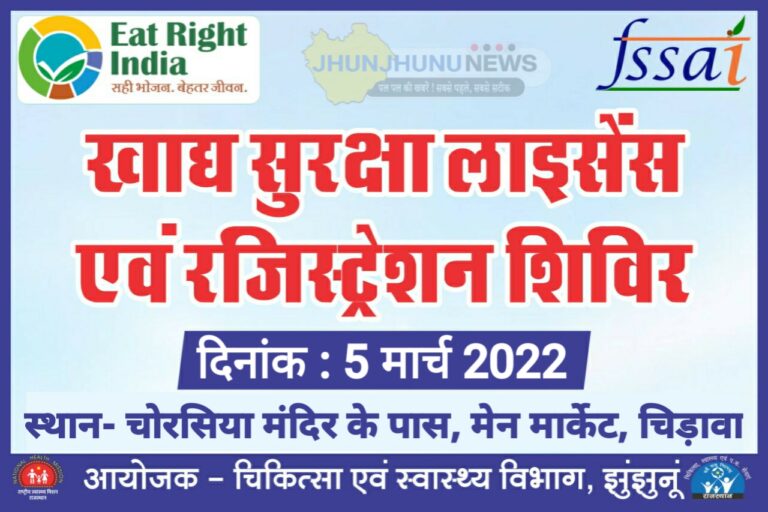 चिड़ावा में FSSAI फूड सेफ्टी लाइसेंस रजिस्ट्रेशन शिविर 5 मार्च को