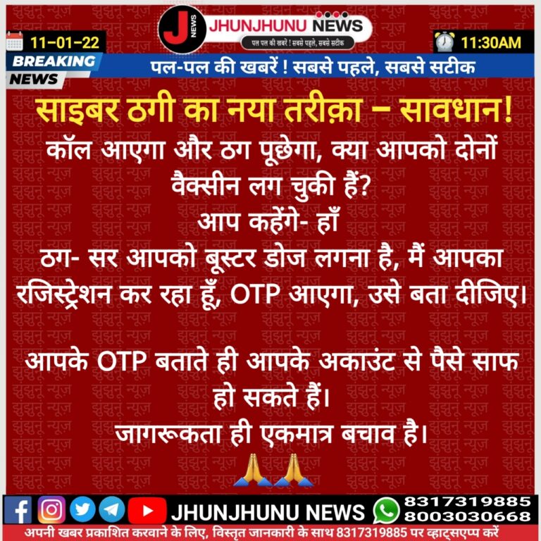 काेराेना संक्रमण का असर एक बार फिर झुंझुनूं में नजर आने लगा है। जिले में मंगलवार काे फिर कोरोना पॉजिटिव … Read more