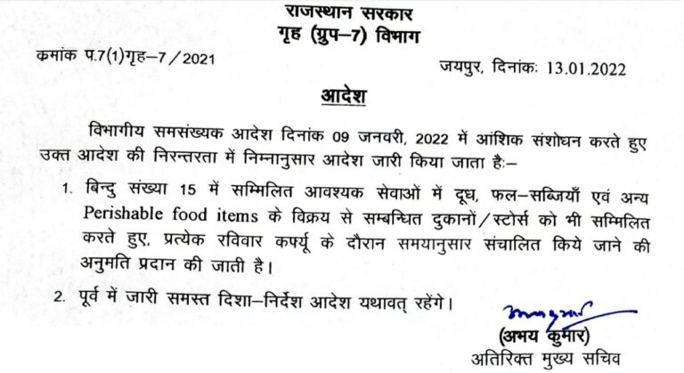 राज्य सरकार ने आज कोरोना गाइडलाइन में आंशिक संशोधन करते हुए रविवार को लगाए जाने वाले कर्फ्यू के दौरान दूध, … Read more
