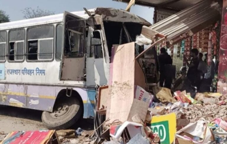 अनियंत्रित होकर दुकान में घुसी रोडवेज, 20 यात्री चोटिल